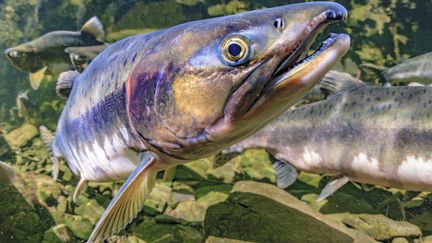Un saumon nageant dans une rivière en Alaska,le 3 décembre 2025. (THOMAS KLINE / Connect Images)