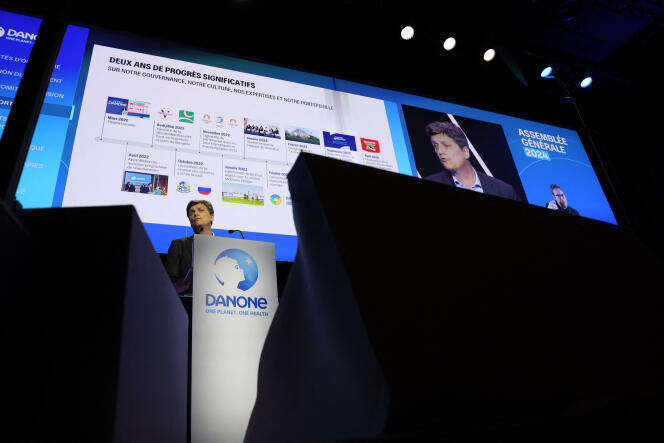 Antoine de Saint-Affrique,PDG de Danone,à Paris,le 25 avril 2024. ALAIN JOCARD / AFP En mars 2022,Antoine de Saint-Affrique,fraîchement nommé à la tête de Danone,dévoilait son plan stratégique. A cette occasion,la communauté financière avait été conviée à Evian-les-Bains (Haute-Savoie),aux sources historiques de l’entreprise agroalimentaire. Et le nouveau directeur général mettait en exergue une innovation : une bouteille d’Evian avec des bulles.
