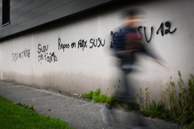 Graffitis sur lesquels on peut lire « Susu on t’aime » et « Repos en paix Susu »,dans la zone où Sulivan S. a été tué par une policière. A Cherbourg,le 19 juin 2024. LOU BENOIST / AFP La policière de 46 ans mise en examen pour meurtre après avoir tiré dans le torse d’un jeune homme de 19 ans à Cherbourg (Manche) était-elle en état de porter une arme létale ? C’est une des interrogations auxquelles devra répondre l’enquête ouverte depuis le décès de Sulivan S.,mortellement blessé le 9 juin par une balle tirée par une gardienne de la paix. La policière a,depuis,été mise en examen pour meurtre – fait rare pour un usage d’arme en service – puis placée sous contrôle judiciaire – autre fait rarissime dans la mesure où les suspects d’homicide volontaire sont généralement placés en détention provisoire.