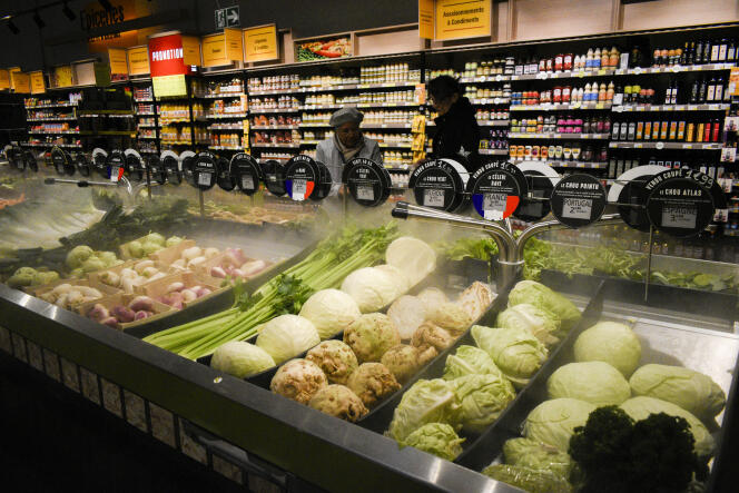 Dans un supermarché Grand Frais aux Sables-d’Olonne,en Vendée,le 24 avril 2024. MAGALI COHEN / MAGALI COHEN « La cadence,la cadence,la cadence. Tout est millimétré. » En commençant sa journée de travail trois heures avant l’ouverture de l’un des 316 supermarchés Grand Frais de France,Antoine – son prénom a été changé par crainte de représailles –,employé du rayon des fruits et légumes,sait déjà à quoi s’attendre. Ce trentenaire aux cheveux courts commence toujours par « bien refaire le tri,tailler toutes les croûtes noircies des salades,enlever les premières feuilles des choux… »,avant de disposer l’arrivage du matin dans les rayons « selon une technique bien précise qu’il faut respecter ».