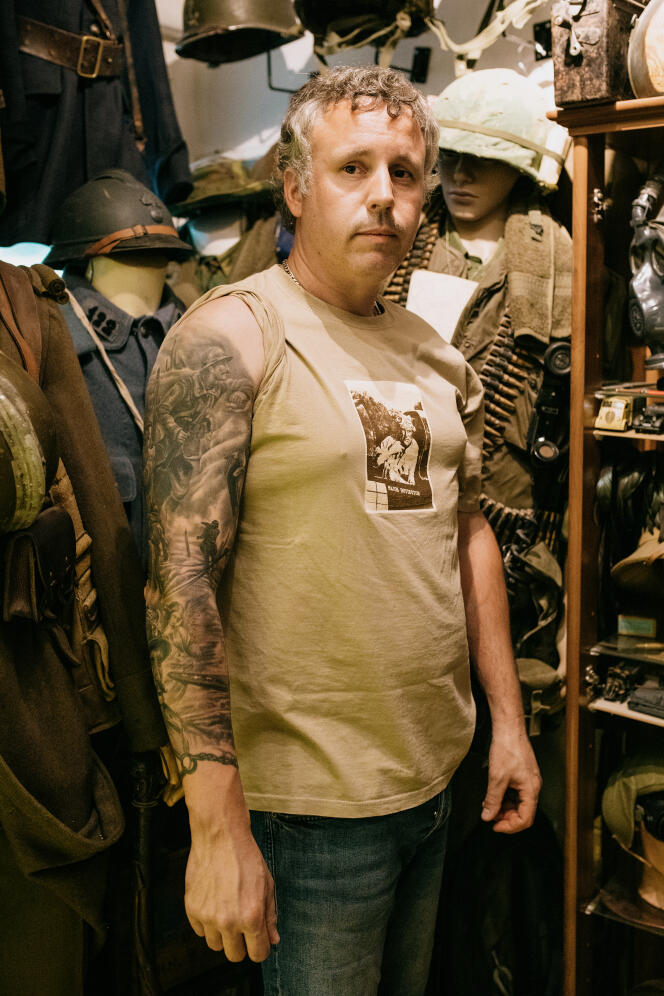 Sylvain Guéguen,chez lui,à Huparlac,dans l’Aveyron,le 5 juin 2024. SANDRA MEHL POUR « LE MONDE » Je porte un visage de poilu. Et deux soldats qui regardent l’horizon depuis leur tranchée – l’un d’eux a la moustache,l’oreille pliée de naissance et le numéro de régiment de mon ancêtre. J’ai aussi deux silhouettes dans les barbelés d’un no man’s land,sous une explosion d’obus. Une réplique d’affiche de propagande,avec un enfant dans les bras d’un poilu. Et puis une scène de combat où l’on voit un soldat armé d’une matraque avec des pointes au bout. L’armement primitif du poilu dans les corps-à-corps jusqu’à la fin de la guerre.