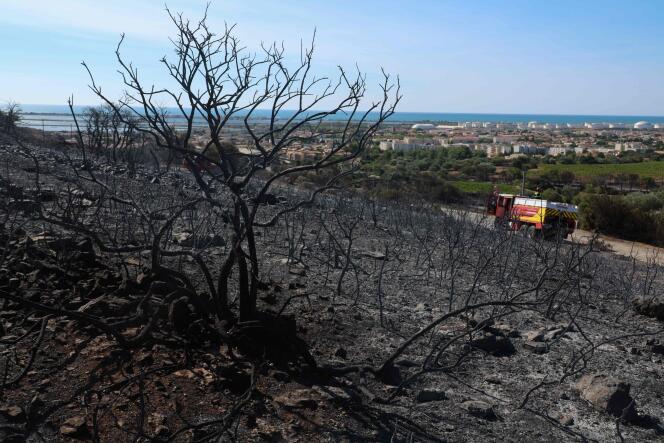 Lors d’une patrouille dans le massif de la Gardiole,au nord de Frontignan,le 19 août 2024. PASCAL GUYOT/AFP L’un des plus grands incendies de l’année,qui s’est déclaré dimanche 18 août après-midi,dans l’Hérault,a été « fixé mais pas éteint » par les pompiers,dans la nuit de dimanche à lundi,et n’évoluait plus après avoir ravagé 350 hectares de pinède,a expliqué au Monde,lundi,en fin d’après-midi,le lieutenant-colonel Jérôme Bonnafoux,porte-parole des pompiers de l’Hérault.