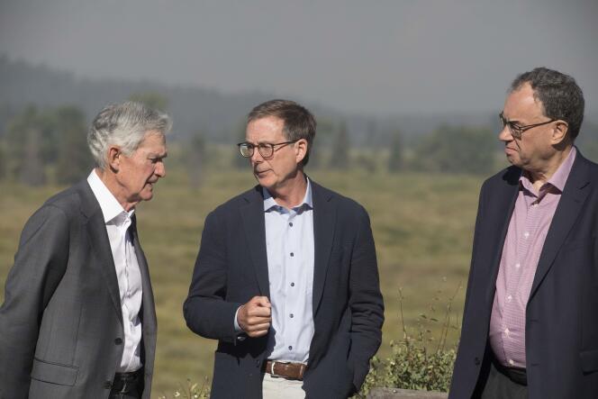 Le président de la Réserve fédérale des Etats-Unis,Jerome Powell,le gouverneur de la Banque du Canada,Tiff Macklem,et celui de la Banque d’Angleterre,Andrew Bailey,à Jackson Hole (Etat du Wyoming),le 23 août 2024. AMBER BAESLER / AP Pas à pas,de façon prudente et graduelle,les banques centrales du monde occidental sont en train d’ouvrir un nouveau cycle monétaire. Après la brusque hausse des taux d’intérêt qui a fait suite à la grande poussée d’inflation (2022-2023),puis une période d’attente d’environ un an,elles sont en train de baisser les taux un peu partout. Vendredi 23 août,le président de la Fed,la banque centrale américaine,ouvrant le symposium annuel de Jackson Hole,dans le Wyoming,s’est pratiquement engagé à réduire les taux d’intérêt américains : « Le moment est venu d’ajuster notre politique [monétaire] »,a-t-il déclaré.