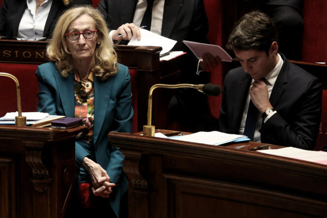 La ministre de l'éducation nationale,Nicole Belloubet,et le premier ministre,Gabriel Attal,lors d’une séance de questions au gouvernement,à l'Assemblée Nationale,à Paris,le 12 mars 2024. STEPHANE LEMOUTON / BESTIMAGE / STEPHANE LEMOUTON / BESTIMAGE Nicole Belloubet a prévenu que ses mots sur le futur budget de l’éducation nationale ne pouvaient être qu’« hésitants »,mais le message,lui,est clair. En l’état,le projet budgétaire adressé par Matignon à son ministère pour 2025 « ne répond pas à l’ensemble [des] besoins » du plus gros portefeuille de l’Etat,a déclaré la ministre démissionnaire,mardi 27 août,lors de la conférence de presse de rentrée,qu’elle a souhaité tenir en dépit de la situation politique.