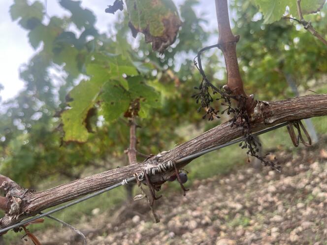 Le mildiou a décimé la totalité du vignoble du Domaine des Pierrettes,entre Chaumont-sur-Loire (Loir-et-Cher) et Amboise (Indre-et-Loire),le 3 septembre 2024. JORDAN POUILLE / LE MONDE Lorsque les touristes longeant la Loire à vélo font halte à la cave du Domaine des Pierrettes,entre Chaumont-sur-Loire (Loir-et-Cher) et Amboise (Indre-et-Loire),ils n’ont aucune idée de la tragédie viticole en cours. Après tout,les ceps sont feuillus. Mais si l’on s’approche,on découvre qu’ils n’ont pas de grappes,juste quelques raisins épars et flétris. Le feuillage est moucheté de taches grises virant au marron. Le mildiou,maladie due à un champignon pathogène,a tout ravagé.