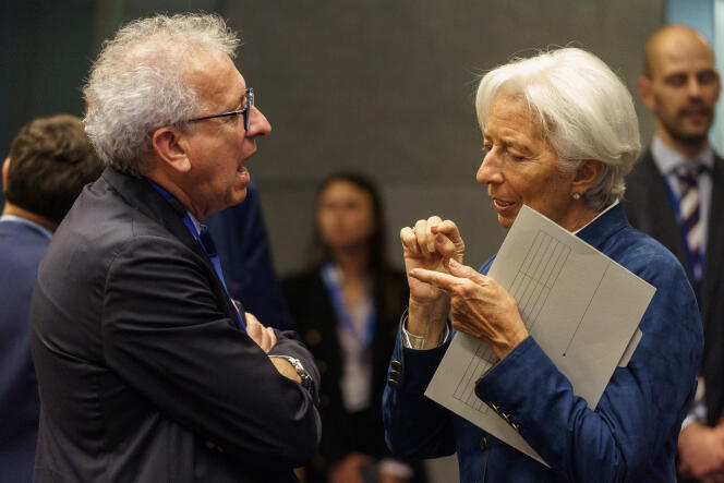 Pierre Gramegna,directeur général du Mécanisme européen de stabilité,s’entretient avec Christine Lagarde,présidente de la BCE,à Luxembourg,le 20 juin 2024. BLOOMBERG / BLOOMBERG VIA GETTY IMAGES C’est une récente rencontre entre d’importants financiers américains et un de leurs contacts à Paris. « Mais alors,que se passe-t-il en Europe ? Pourquoi vous ne faites rien pour votre croissance ? » Eux ont décidé de ne plus mettre un centime sur le Vieux Continent. Ils constatent,incrédules,l’apparente impuissance des pouvoirs publics face à la stagnation économique de la zone euro.