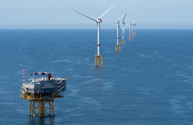 Le parc éolien en mer au large de la baie de Saint-Brieuc,le 18 juillet 2023. DAVID ADEMAS / OUEST-FRANCE / PHOTOPQR / MAXPPP L’inauguration du parc éolien de la baie de Saint-Brieuc,jeudi 19 septembre,scelle la fin d’un serpent de mer breton. Peu se souviennent d’ailleurs de la genèse de ce champ de 62 éoliennes dressées à plus de 16 kilomètres des côtes et d’une puissance de 496 mégawatts,capable de satisfaire la consommation électrique de 835 000 personnes. Cela représente l’équivalent de 9 % de la consommation régionale.