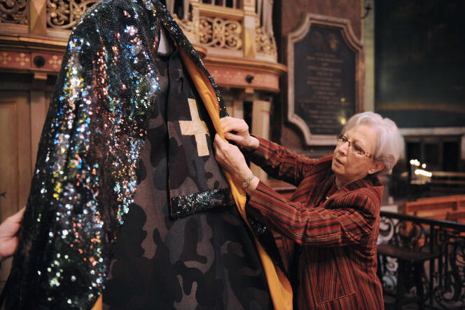 Une femme prépare une robe,la "Battle Dress",offerte par le créateur,Jean-Charles de Castelbajac,pour habiller la Vierge noire de la basilique de la Daurade,à Toulouse le 7 mars 2010. Huit robes,bénies,ont été créées par des grands noms de la haute couture pour remplacer les parures offertes aux XVIIIe et XIXe siècle à cette Vierge. REMY GABALDA / AFP Les religions gagneraient à parler de mode,assure le théologien Alberto Fabio Ambrosio,codirecteur au Collège des Bernardins du séminaire « Ecologie de la mode : vers de nouvelles vertus »,et auteur de Mode et Religion. Habiller le sacré,sacraliser le look (Hermann,2024) et de Théologie de la mode. Dieu trois fois tailleur (Hermann,2021).