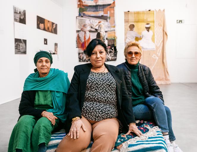 De gauche à droite,les anciennes licières,Djema Atallah Djelilate,Fatna Bensot Benameur et Zora Kechout-Fournier,dans l’une des salles de l’exposition qui leur est consacrée,à Lodève (Hérault),le 7 octobre. SANDRA MEHL POUR M LE MAGAZINE DU MONDE Sur les murs du Cellier des Chanoines,une exposition,intitulée « Les Courageuses »,retrace l’étonnant destin de ces femmes venues d’Algérie,embauchées il y a soixante ans pour être licières,du nom de la lice,le fil qui avance sur le métier à tisser. Sur une photo en noir et blanc,Fatna Bensot Benameur,la soixantaine,pointe du doigt le quatrième étage d’un immeuble,« là où on habitait avec mes parents »,raconte-t-elle à sa fille qui l’accompagne ce jour-là pour la visite. La Cité de la gare,formée de trois bâtiments et construite à la sortie de la ville où Fatna a passé une bonne partie de sa vie,n’existe plus depuis longtemps. Mais sa fille Kemla,32 ans,remonte avec émotion le fil de son histoire familiale en parcourant l’exposition.