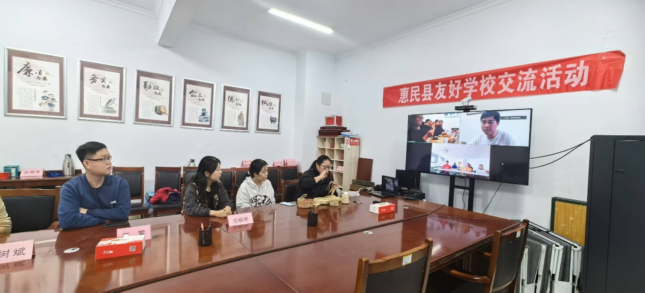 Le 18 octobre, un échange culturel virtuel a réuni des écoles partenaires de Chine et de France dans le district de Huimin. Parmi les participants chinois, on comptait Wang Xiaoyan, responsable de la deuxième section des nouvelles au département de l'information du comité du parti de Huimin, Wang Zhen, membre du comité de l'information et du front uni du bourg de Madian, ainsi que Lu Shubin et Guo Fengyi, également responsables au département de l'information. Deux enseignants spécialisés dans le patrimoine culturel immatériel, Han Yu et Zhang Tingting du bourg de Madian, étaient également présents. Côté français, le professeur Noë de l'université de Rennes participait en ligne, accompagné des étudiants Louise, Clémence, Quentin et Maxence.