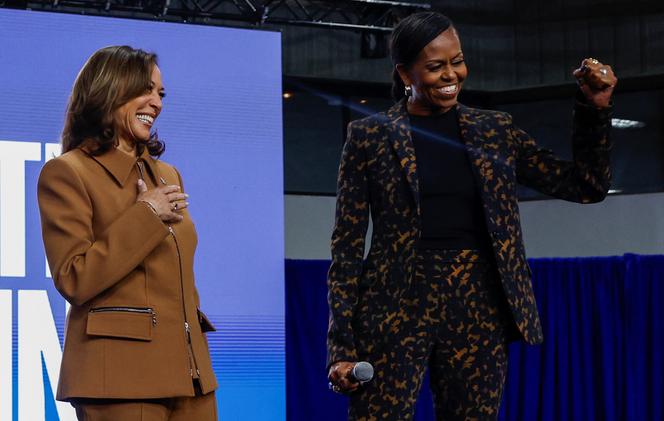La vice-présidente des Etats-Unis,candidate démocrate à la présidence,Kamala Harris,et l’ancienne première dame Michelle Obama,lors d’un meeting démocrate,à Kalamazoo,dans le Michigan,le 26 octobre 2024. EVELYN HOCKSTEIN / REUTERS Il est un peu plus de midi à Kalamazoo,la plus grande ville du sud-ouest du Michigan,un Etat-clé pour l’élection présidentielle du 5 novembre. Samedi 26 octobre,une longue file de sympathisants démocrates s’étire le long du vaste complexe sportif qui s’apprête à accueillir leur candidate,Kamala Harris. La vice-présidente doit être épaulée par une voix qui compte dans leurs rangs,celle de Michelle Obama,mais l’humeur est bridée par les derniers sondages d’intentions de vote publiés par la presse américaine. Ils montrent Kamala Harris au coude-à-coude avec l’ancien président républicain Donald Trump,y compris dans le Michigan qu’elle doit impérativement remporter pour espérer succéder à Joe Biden.