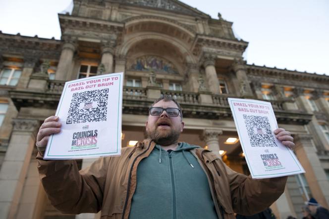 Un manifestant montre des QR codes pour envoyer aux députés des courriels de protestation contre les coupes budgétaires du conseil municipal,à Birmingham (Royaume-Uni),le 5 mars 2024. JOHN HARRIS/REPORT DIGITAL-REA Jean Cross reçoit dans son modeste pavillon de la banlieue sud de Birmingham,pas très loin de la chocolaterie Cadbury et du campus universitaire de la deuxième ville d’Angleterre (101 conseillers municipaux pour 1,15 million d’habitants). Vêtue d’un tee-shirt « Save Harborne Day Centre »,cette énergique sexagénaire s’est engagée à corps perdu dans une campagne pour sauver le centre de jour pour adultes handicapés que son frère,Robert,62 ans,tétraplégique,fréquente depuis quarante-trois ans.