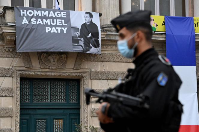 Lors de l’hommage national à Samuel Paty,à Montpellier,le 21 octobre 2020. PASCAL GUYOT / AFP Quatre ans après l’assassinat du professeur d’histoire-géographie Samuel Paty par un jeune Tchétchène radicalisé de 18 ans,le 16 octobre 2020,le temps du grand procès est arrivé. Huit adultes,impliqués à divers degrés dans l’engrenage mortifère qui a conduit à la décapitation de l’enseignant à la sortie de son collège de Conflans-Sainte-Honorine (Yvelines),sont jugés,à partir du lundi 4 novembre,devant la cour d’assises spéciale de Paris.