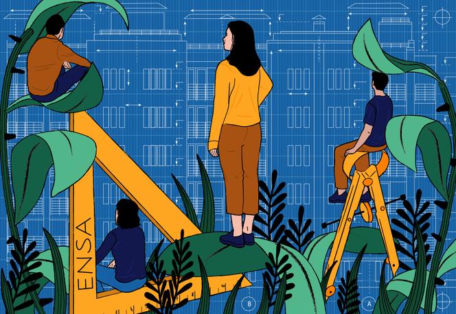 PALM ILLUSTRATIONS Voilà un cours de licence que Margot Servières,étudiante en architecture,n’oubliera jamais. « Le professeur a annoncé qu’on se pencherait essentiellement sur la construction en béton,un matériau qui consomme énormément de ressources. Comment est-il possible d’avoir encore ce genre de cours aujourd’hui ? »,s’indigne la jeune femme de 24 ans. Si,en 2020,elle est la seule à fermer son ordinateur et à quitter la salle de l’Ecole nationale supérieure d’architecture (ENSA) de Montpellier,ils sont nombreux,autour d’elle,à éprouver une forme de malaise.