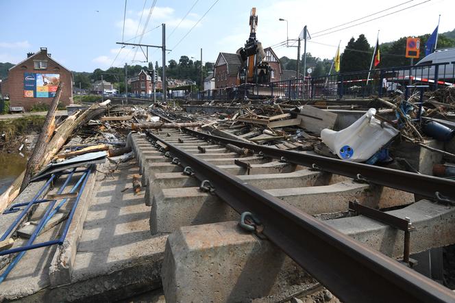 Des voies de chemin de fer endommagées à la suite d’inondations exceptionnelles dans l’est de la France,l’ouest de l’Allemagne,en Belgique et au Luxembourg,en juillet 2021. Ici,à Pepinster,en Belgique. JOHN THYS/AFP Les images terrifiantes des amas de voitures,entassées sens dessus dessous dans les rues de la banlieue de Valence (Espagne),à la suite des inondations qui ont ravagé la région,fin octobre,ont marqué les esprits. Outre l’ampleur de la catastrophe,qui a fait 224 morts,selon un bilan provisoire au 15 novembre,une question émerge des décombres : comment nous déplacerons-nous à l’avenir si nos moyens de transport sont détruits,les routes submergées,les parkings souterrains remplis d’eau,les voies de chemin de fer dévastées par des pluies torrentielles dont l’ampleur est aggravée par le réchauffement climatique ?