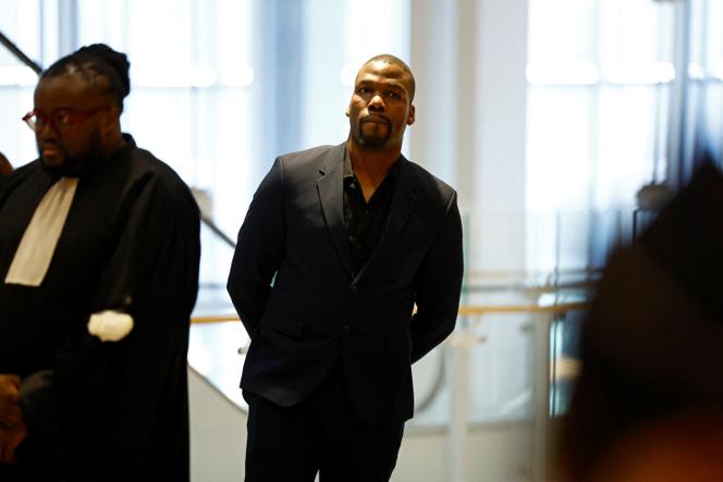 Mathias Pogba (au centre),avec son avocat Mbeko Tabula,au tribunal correctionnel de Paris,