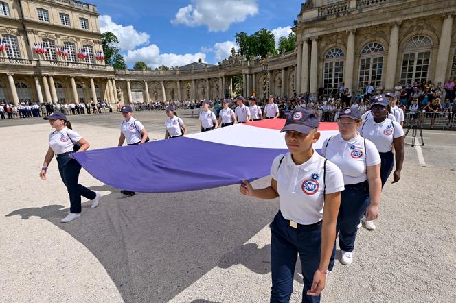 La cérémonie du 14-Juillet,organisée place de la Carrière,à Nancy,le 14 juillet 2024. CEDRIC JACQUOT / PHOTOPQR/L'EST REPUBLICAIN/MAXPPP L’expérience est celle dont les conditions s’approchent le plus de celles d’un service national universel (SNU) qui serait généralisé à l’intégralité d’une classe d’âge,comme le souhaitait le président de la République,Emmanuel Macron.