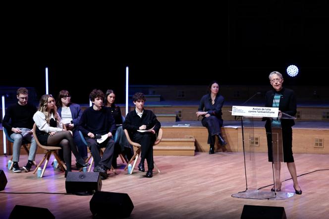 Elisabeth Borne,ministre de l’éducation,lors des assises de lutte contre l’antisémitisme,à la Maison de la radio,à Paris,le 13 février 2025. STEPHANE DE SAKUTIN/AFP Ils se sont installé de chaque côté de la scène du studio 104 de Radio France,entre les énormes bas-reliefs du sculpteur Louis Leygue. Douze jeunes de confession juive,lycéens,collégiens et étudiants,sont venus,jeudi 13 février,témoigner de leur expérience à l’occasion de la relance des assises de lutte contre l’antisémitisme. Les uns après les autres,avec parfois de l’émotion dans la voix,ou de la colère,ils ont partagé leur vécu,ou raconté ce que d’autres leur avaient rapporté : des insultes voire des agressions commises sur eux parce qu’ils sont juifs. Des récits suivis d’une réflexion et d’une discussion entre une avocate,un recteur d’université et une historienne.