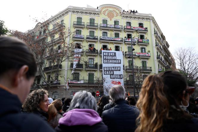 Des résidents et des membres du syndicat des locataires se rassemblent pour empêcher des expulsions de l’immeuble Casa Orsola,devenu un symbole de la crise du logement,à Barcelone,le 31 janvier 2025. JOSEP LAGO / AFP La Casa Orsola est un symbole. Acheté par le fonds d’investissement catalan Lioness Inversiones en 2021,cet édifice moderniste du quartier de l’Eixample,dans le centre de Barcelone,incarne la crise du logement,la spéculation immobilière et la gentrification de la cité méditerranéenne. Il représente aussi la révolte de la classe moyenne,incapable de se loger aux prix du marché,incarnée par la poignée de locataires qui refusaient de quitter le lieu. A commencer par Josep Torrent,professeur de mathématiques dans un collège de la banlieue de Barcelone,locataire depuis vingt-deux ans du même appartement.