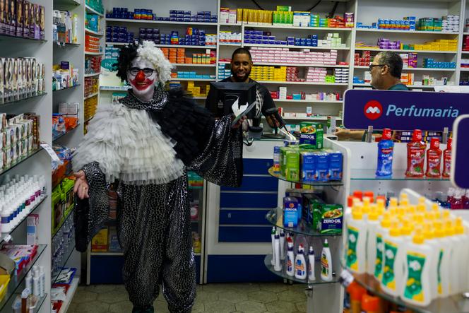 Un artiste de rue,dans une pharmacie de Rio de Janeiro (Brésil),le 23 février 2025. ANTONIO LACERDA / EFE Mardi 25 février au matin,les ruelles du Saara,un immense marché populaire situé en plein cœur de Rio de Janeiro,sont bondées. Malgré la canicule,la foule se presse dans les magasins pour faire le plein de fantasias : des accessoires pailletés et colorés,indispensables pour participer aux blocos,ces cortèges de rue traditionnels qui ont lieu pendant le carnaval. Celui-ci sera officiellement célébré en 2025 les 1er,2,3 et 4 mars,alors que l’ensemble des festivités se tiennent du 28 février au 8 mars. « Ici,les produits sont bon marché ! »,explique Lucas Machado,un programmateur de 26 ans,qui s’apprête à acheter un tutu rose et argenté pour sa petite amie.
