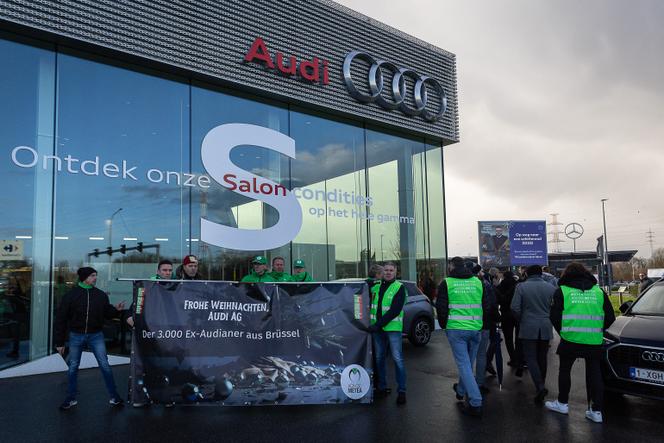 Des manifestants participent à une journée d’action appelée par les syndicats d’Audi Brussels contre la fermeture prochaine de l’usine de Forest,en Belgique,le 23 décembre 2024. JAMES ARTHUR GEKIERE/AFP Audi Brussels,ce fut « une longue histoire et une triste fin »,titrait,vendredi 28 février,le quotidien économique L’Echo,alors que l’usine se préparait à fermer ses portes et à licencier quelque 3 000 travailleurs – sans compter les 1 000 autres personnes employées par cinq sous-traitants,qui n’ont pas été incluses dans le processus de la loi sur les licenciements collectifs. Celles-là devront se contenter d’indemnités de départ inférieures de 90 % à celles âprement négociées par les syndicats de l’usine de Forest,près de Bruxelles,qui ont obtenu,au total,610 millions d’euros de la direction allemande du groupe Volkswagen (VW),qui possède Audi.