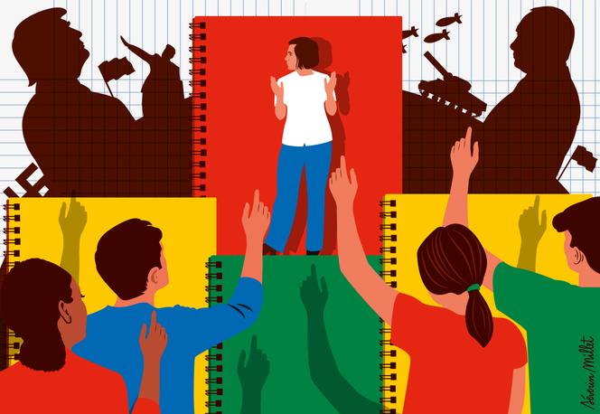Comme à chaque crise géopolitique,les professeurs d’histoire-géographie font face aux questions de leurs élèves. De l’avis des enseignants interrogés,elles sont moins nombreuses qu’après l’attaque terroriste du Hamas contre Israël le 7 octobre 2023 ou que lors du déclenchement de la guerre en Ukraine,en 2022. Mais,en classe de 3e comme en terminale,les bouleversements en cours percutent le programme – centré respectivement sur les thèmes « Le monde depuis 1945 » et « Les relations entre les puissances et l’opposition des modèles politiques,des années 1930 à nos jours » – et poussent les enseignants à faire des ponts entre passé et présent.
