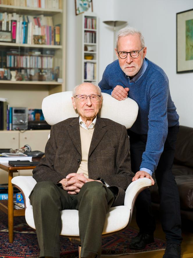 Charles Dreyfus (à gauche) et son fils,Michel,chez lui,à Boulogne-Billancourt,le 27 février 2025. TERENCE BIKOUMOU POUR M LE MAGAZINE DU MONDE Dans son appartement de Boulogne-Billancourt,près de Paris,Charles Dreyfus conserve de nombreux souvenirs. Sa bibliothèque bilingue raconte la première partie de sa vie aux Etats-Unis,avec son père,Pierre Dreyfus,et sa mère,Marie Baur,tous deux juifs ayant fui la guerre pour New York en 1942. Au mur,une magnifique photo de la ville-monde attire le regard et l’homme de 97 ans,toujours droit dans son costume brun,sourit en la regardant.