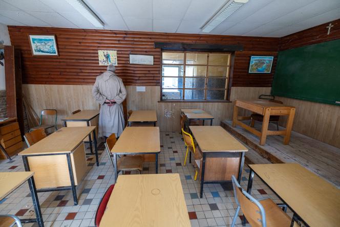 Une salle de classe,lors de la visite du village d’enfants de Riaumont,à Liévin (Pas-de-Calais),par les députés de la commission d’enquête parlementaire Violette Spillebout (Renaissance) et Paul Vannier (La France insoumise). MATTHIEU BOTTE/VOIX DU NORD/MAXPPP Violette Spillebout (Nord,Renaissance) et Paul Vannier (Val-d’Oise,La France insoumise,LFI) n’ont pas de temps à perdre dans cette journée millimétrée. Les deux députés,corapporteurs de la commission d’enquête parlementaire sur les violences à l’école constituée à la suite de l’affaire Bétharram,sont venus à Liévin (Pas-de-Calais) en cet après-midi du vendredi 4 avril pour contrôler « sur place et sur pièces » le village d’enfants de Riaumont,au cœur de plusieurs affaires de violences sur mineurs. Accompagnés de leurs équipes et de victimes,les élus avancent au pas de charge sur la colline boisée qui a abrité un foyer d’aide sociale à l’enfance de 1960 à 1982 puis une école hors contrat,Saint-Jean-Bosco,de 1989 à 2019,tous deux tenus par une communauté catholique traditionaliste.