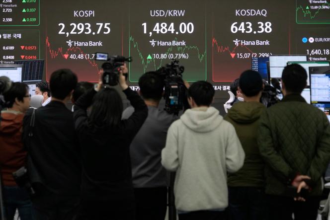 Dans la salle des marchés de change du siège de la KEB Hana Bank,à Séoul,en Corée du Sud,le 9 avril 2025. AHN YOUNG-JOON / AP Les boursiers américains appellent cela le dead cat bounce,littéralement le « rebond du chat mort »,ce sursaut des cours après une forte chute,lorsque les investisseurs les plus téméraires repartent à l’achat pour tenter de profiter de valorisations redevenues attractives. Ce mouvement s’est amorcé mardi 8 avril à Wall Street,mais il n’a duré que quelques heures avant d’être brutalement interrompu par l’annonce de l’entrée en vigueur,dès mercredi,de droits de douane de 104 % sur les produits chinois importés aux Etats-Unis. La tendance s’est vite inversée et l’indice S&P 500,qui regagnait 4,1 % en début de séance,a fini en baisse de 1,6 %.