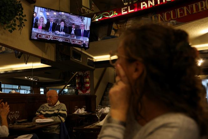 Le président argentin,Javier Milei,annonce à la télé un nouveau prêt de 20 milliards de dollars attribué par le FMI,à Buenos Aires,le 11 avril 2025. CRISTINA SILLE / REUTERS Une pluie de dollars frais. Après des semaines de rumeurs et de bribes d’annonces,le gouvernement argentin a formellement confirmé un nouvel accord avec le Fonds monétaire international (FMI),vendredi 11 avril. Un prêt de 20 milliards de dollars (17,6 milliards d’euros),à rembourser d’ici dix ans,assorti d’une période de grâce de quatre ans et demi,selon le gouvernement.