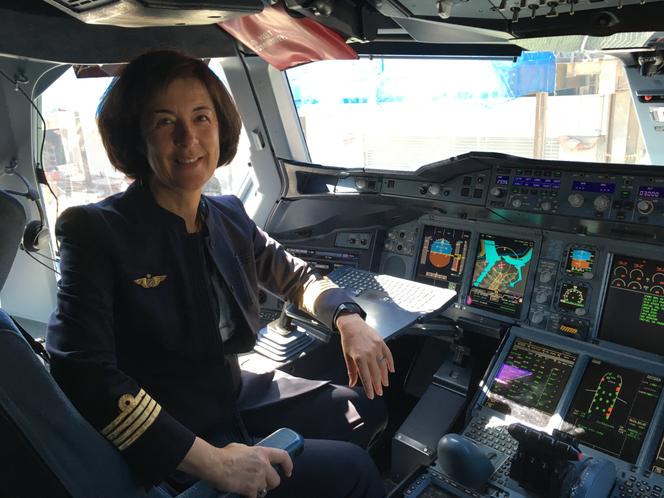 Christine Debouzy,dans le cockpit d’un A380 de la compagnie Air France,en 2018. COLLECTION PERSONNELLE Seulement 5 % des pilotes professionnels dans le monde sont des femmes. Pilote de ligne retraitée et présidente de l’Association française des femmes pilotes,Christine Debouzy multiplie les démarches pour lutter contre les stéréotypes et féminiser les effectifs.