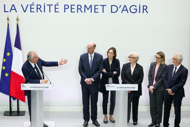 Le premier ministre,François Bayrou,avec,à sa gauche,le ministre de l’économie,Eric Lombard,