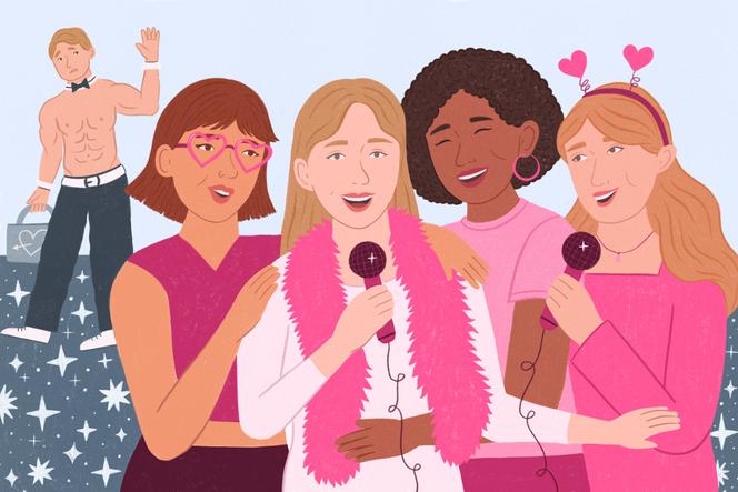 TWINKEL ACHTERBERG Du premier EVJF – pour « enterrement de vie de jeune fille » – auquel elle a participé,Louise (les personnes citées par leur seul prénom ont souhaité l’anonymat),26 ans,chargée de production dans une radio publique,garde le souvenir d’un « événement bourré de clichés » : « On devait porter des masques et du rose,cocher les cases de ce qui est attendu d’une femme. » Parmi les moments les plus lunaires,l’envoi d’un strip-teaseur par le beau-frère de la future mariée,malgré les réticences exprimées par cette dernière.