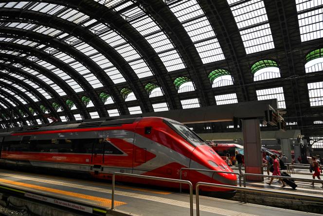 Un train à grande vitesse de Trenitalia à la gare de Milan (Italie),le 7 juillet 2023. GABRIEL BOUYS/AFP Comme à chaque grève à la SNCF,la concurrence se frotte les mains. Alors que le mouvement social se précise tout au long de la semaine du lundi 5 au dimanche 11 mai,les voyageurs qui avaient réservé un billet de l’entreprise publique,inquiets des potentielles annulations de trains,s’empressent de changer leurs plans pour le week-end prolongé permis par le pont du 8-Mai.
